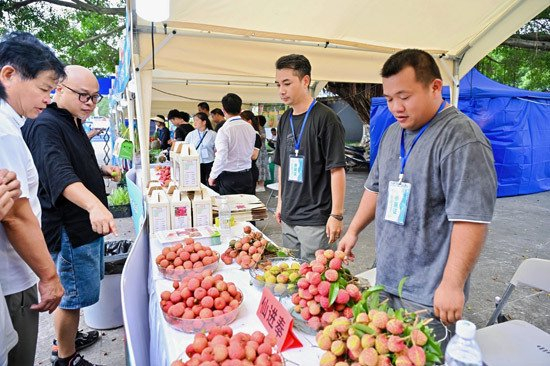 “平陆运河·通江达海”市集上展出的钦州荔枝