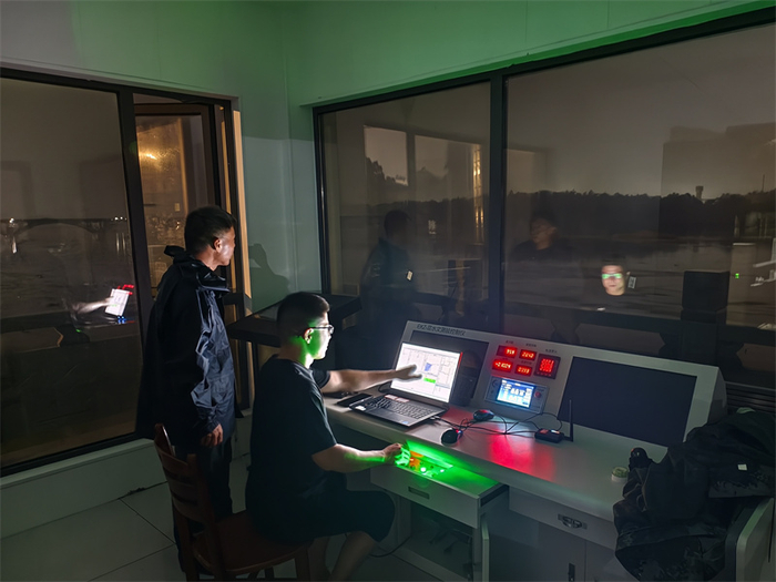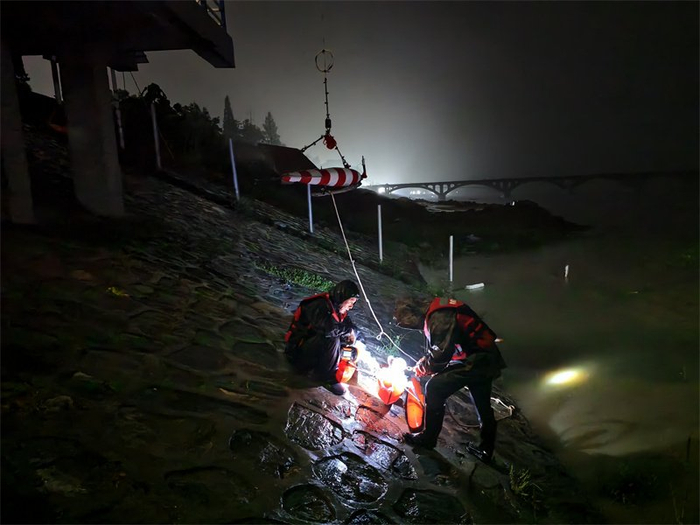 从晚上11点30分开始,站上职工需要每五分钟冒雨观测一次水位,一直坚持到零点五十分,注意到水位稳定在34.2m无变动,这意味着,洪峰可能要到了。该站决定全员出击,开始抢测洪峰流量,最终在凌晨1时21分测得峰顶流量822m³/s。从下达测流命令到取得报汛流量仅耗时半小时,数据及时且准确,为水情科开展4次滚动预报筑牢根基。