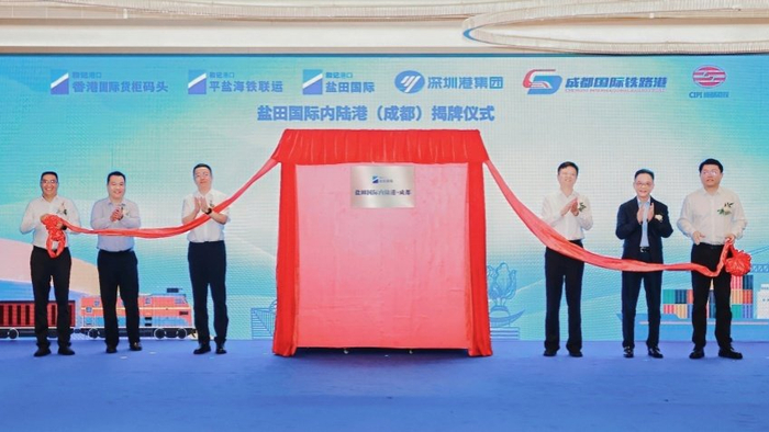 “蓉深港图定班列”首发当天,盐田国际内陆港(成都)揭牌,标志着盐田港第18个内陆港——成都内陆港正式启用。