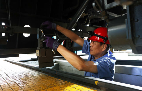 “姜忠志负责检查车下接收线圈,刘海峰负责更换速度传感器,杨云龙负责车上设备检测,今天气温高,车上闷热,时间长人容易中暑,大家干活要麻利,但质量必须得保证!”工长袁铁明叮嘱道。分工妥当,准备工作就绪,大家背着工具包来到机车旁。此时室外温度达到了35℃,在烈日的暴晒下,机车内的温度更是接近50℃。