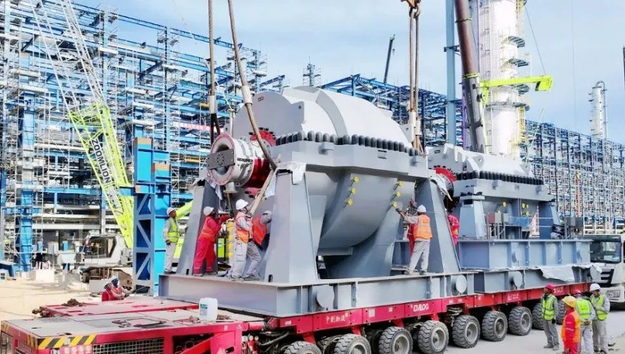 7月1日,在中国、沙特两国即将迎来建交35周年之际,备受瞩目的中沙古雷乙烯项目传来喜讯:该项目核心动力设备——由沈鼓集团自主研制的超大型裂解气压缩机在福建古雷石化基地顺利交付并成功吊装就位,标志着中沙古雷乙烯项目全面进入设备安装阶段。这台被誉为“龙头心脏”的大国重器,再次见证了沈鼓集团推进我国重大装备核心技术从“跟跑”到“并跑”,正在迈向“领跑”的发展加速度。