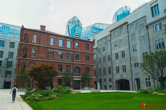 庭院广场里的红砖楼格外醒目。钱尤祎摄“今后,这里将是高端现代服务业经典历史街区、国际金融办公服务平台、中央活动区文化标杆、城市共享公共空间。”谈及未来,俞未满怀信心。(金煜纯、轩召强、董志雯、钱尤祎)