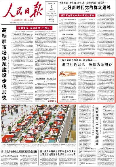 《人民日报》2025年07月06日 第 01 版 版面截图原题:江苏干部群众传承伟大抗战精神——