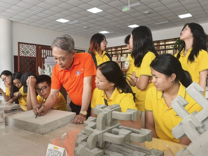 石永恩正在传授石刻技艺。张英摄如果说数字技术让历史“活”了过来,那么跟随国家级非物质文化遗产代表性传承人石永恩学习石刻技艺,则让文化真正“长”进了孩子们的心里。在安岳石刻·圆觉洞景区游客中心的非遗工坊里,石永恩手持錾子,将自己的技艺传授给孩子们。不少孩子在石永恩指导下尝试雕刻纹样,西班牙华裔少年徐嘉隆舍不得停手:“我以前觉得石刻很硬、很冷,现在才知道,每一次雕刻都要带着温度。”