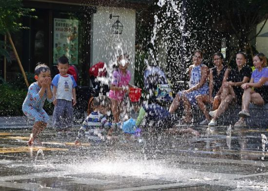 在免费的江南雾屿儿童喷泉区,晶莹的水花与欢快的尖叫一同迸发。