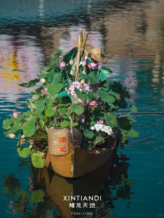 在蟠龙天地,你不仅能够看到荷花满开的池塘,还能在周末偶遇水上的“移动荷塘”。