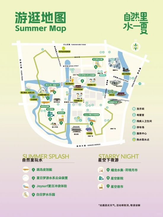 上海市文化旅游局介绍,水上移动荷塘、户外水乐园、星空夜市、夜光皮划艇……在蟠龙天地,可以找到这个夏天极具松弛感的节奏,解锁江南夏日的专属浪漫。详见↓