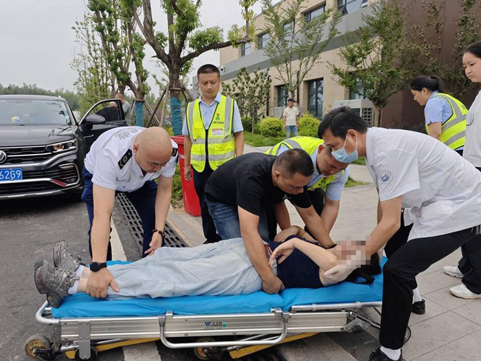 工作人员凭借丰富的救助经验,立即从餐厅拿来干净筷子让女子咬住,防止二次受伤,同时拨打120急救电话,疏散人群保障通风,安排人员引导,确保救援通道畅通。约20分钟后,急救车辆抵达,工作人员协助将女子抬上担架送医。