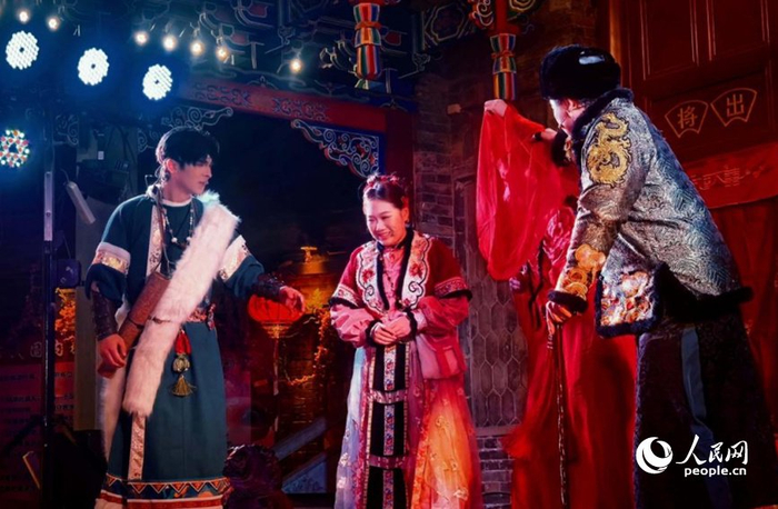 大型实景沉浸式体验剧《寻找白俊英》将首演。人民网记者 许维娜摄据介绍,跨年夜当晚,大型实景沉浸式体验剧《寻找白俊英》将同步首演。游客们可以化身“寻吉人”,跟随工作人员的情景引导,循着寻找年画仙子“白俊英”的线索,穿梭于石家大院、赶大营博物馆等点位,在互动中解锁吉祥密码,沉浸式感受古镇的独特魅力。