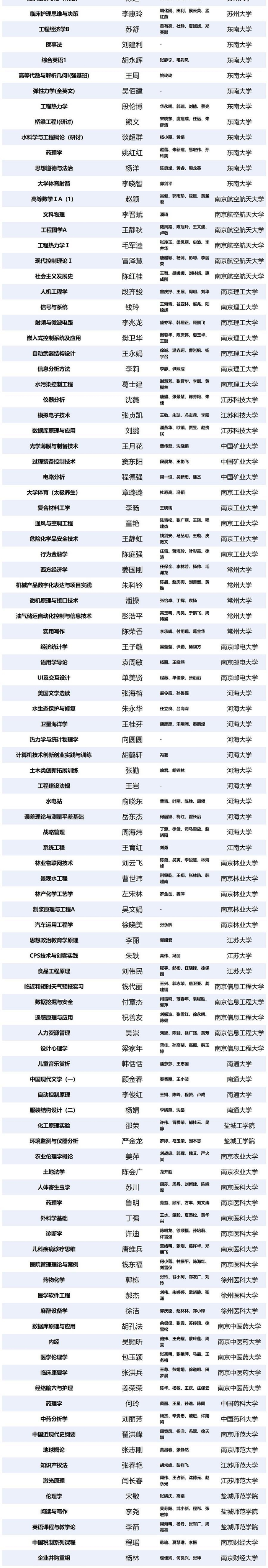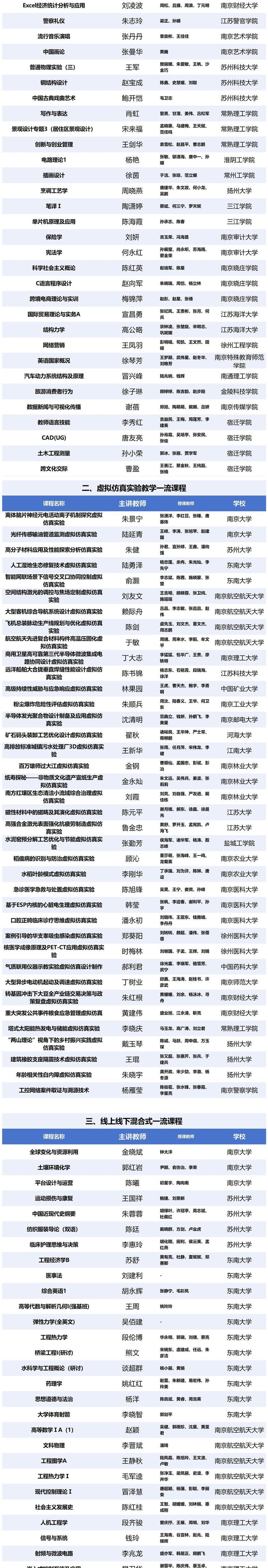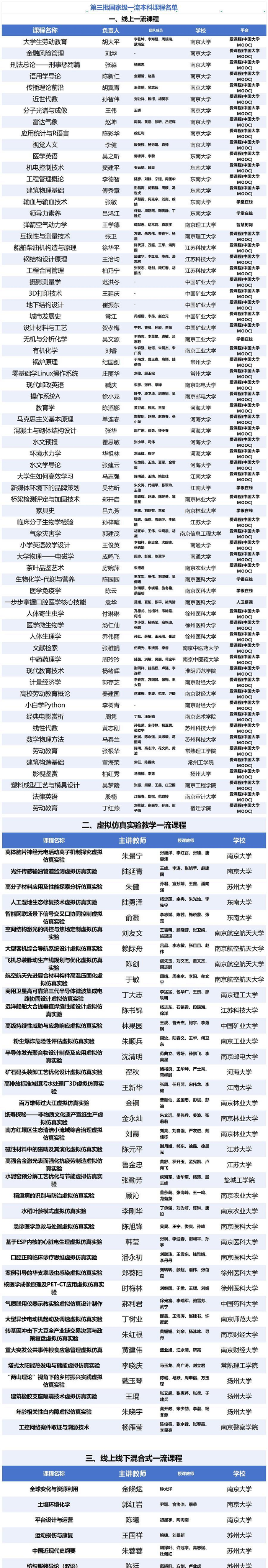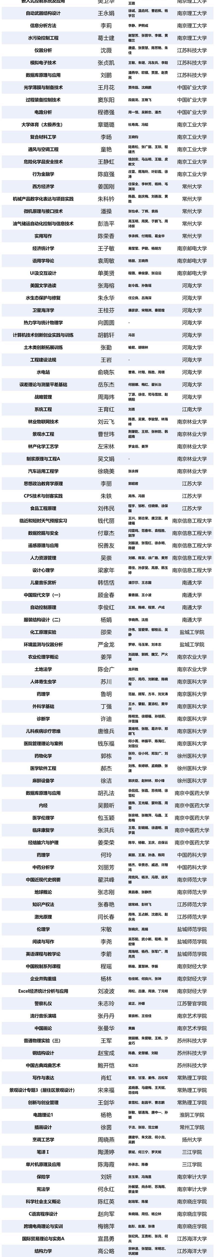 原题:第三批国家级一流本科课程公布,江苏这些课程入选