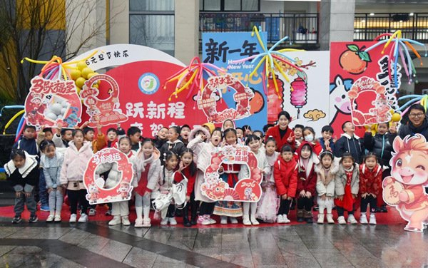 学生合影。校方供图清晨,校领导与教师们在校门口亲切问候每一位学生,并送上寓意吉祥的新年小礼物。这一安排不仅为孩子们带来惊喜,也体现出学校注重人文关怀、珍视每个个体的教育初心。