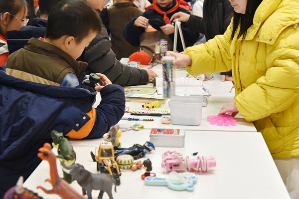 学生体验趣味游戏。校方供图三四年级的“童享集市”则注重社会性素养的培育。学生们将自己闲置的书籍、玩具、手工作品进行陈列交换,在模拟的真实场景中学习沟通表达、理解价值概念、实践诚信交往。