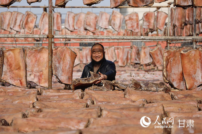 色泽红润、油脂晶莹的陇西腊肉是当地代表性的传统美味。人民网记者 焦隆摄“腊肉手艺是从我爷爷手里传下来的,我是第三代,儿子已经开始学了,算是第四代。”省级非遗代表性传承人郭陇陇说。