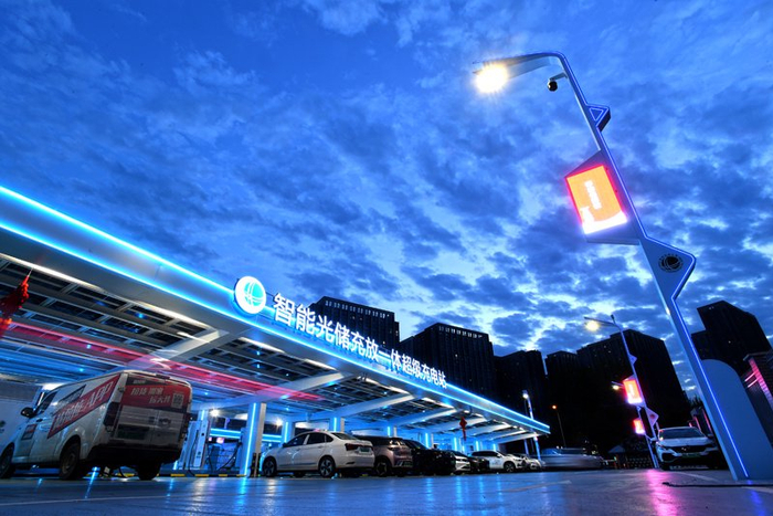 武汉南太子湖智能光储充放一体超级充电站。王欣摄在武汉南太子湖智能光储充放一体超级充电站,应用全液冷超充技术,充电效率大幅提升。“站内大功率充电桩最大输出功率达600千瓦,相较传统充电桩提速近10倍,适配多种新能源车型,10分钟就能充够300公里续航,进一步减少车主充电时间。”国网电动汽车服务湖北有限公司充电事业部专责李巍介绍。