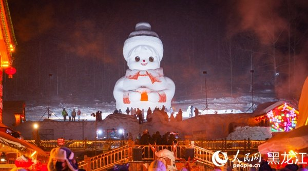 人民网牡丹江1月2日电 (记者苏靖刚、尚城)1月1日,中国雪乡景区备受瞩目的16米大雪人如期竣工亮相。这座雪雕褪去“雏形外衣”,以憨态可掬的姿态矗立在林海雪原间,成为雪乡元旦假期一道亮眼的风景线。