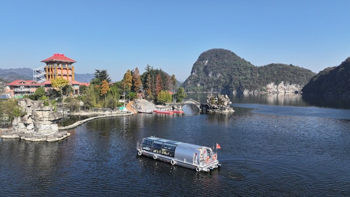 1月1日,3艘“生态物语”系列新能源船舶亮相百花湖风景名胜区,并正式下水起航,标志着百花湖景区生态低碳游船时代正式到来。