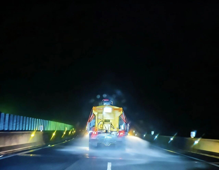 傍晚气温骤降,预防性融雪剂撒布作业随即展开。自18时59分起,各大队联合高速交警及经营单位,对G76厦蓉高速、G56杭瑞高速、S55仁望高速、S82筑大高速等道路易凝冻路段,开展多轮次融雪剂撒布作业。作业持续至次日凌晨,有效延缓了路面结冰,为后续应对争取了主动。