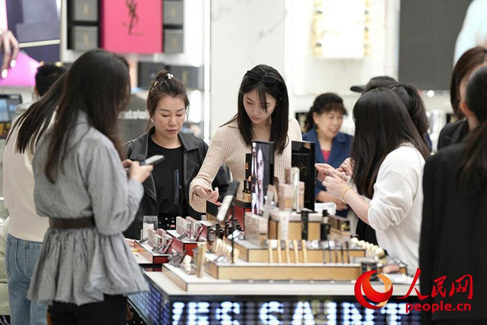 1月4日,游客在海口国际免税城选购免税商品。人民网记者 符武平摄目光转向海南。在离岛免税新政调整与全岛封关元年双重背景下,海南自由贸易港吸引了众多国内外游客前来“买买买”。