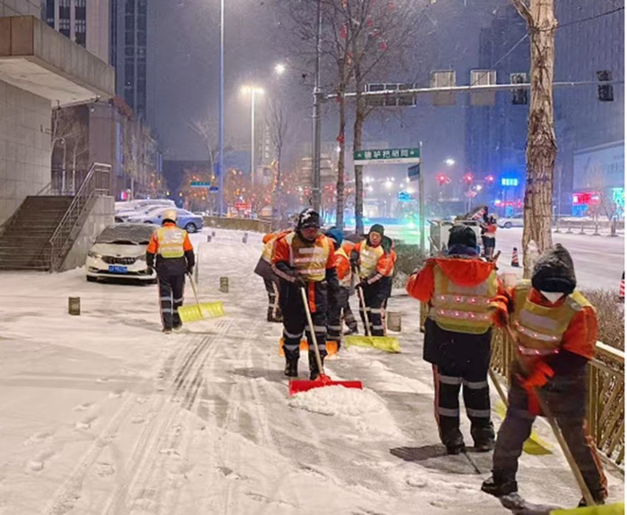 长春市城市管理系统按照清雪预案,1.5万名环卫工人、1800余台清雪车辆提前在点位集结待命,降雪开始后,立即开展清雪作业。至早上7点,快速路、主要街路基本清扫完毕,清运积雪3000立方米,有效保障了早高峰通行。