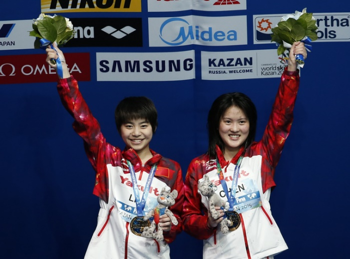 时间追溯到2016年8月10日,里约热内卢的玛丽亚·伦克水上中心。陈若琳/刘蕙瑕前四跳结束,仅与第二名领先5分的微弱优势,最后一跳5253B她们完美入水,为中国队锁定了女双10米台的冠军。