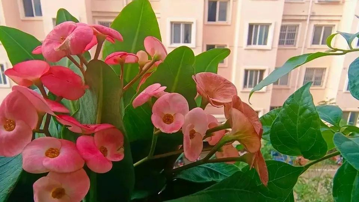 虎刺梅超级好养,是个典型的懒人花卉,放在阳光充足的地方,让白天和夜晚有5到10度的温差,一年四季都能开花不断。