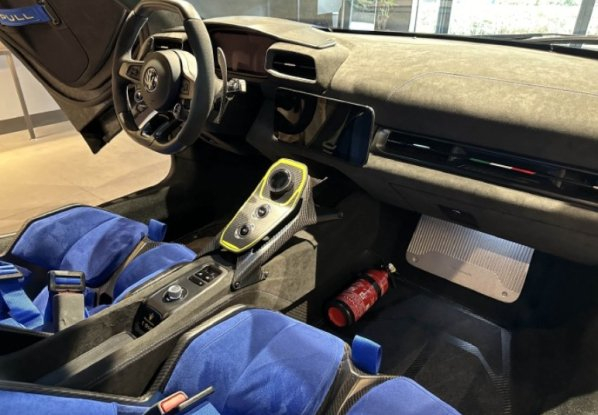 车辆座舱的一大亮点是配有泡沫材质头枕,采用Blu Elettrico Alcantara材质,呈现出独特的美学风格。座椅设计使驾驶位置进一步降低,凸显赛车特性。驾驶员座椅提供大号(标准)和小号(选装,座椅下部包裹性更强)两种尺寸,配备三点或四点安全带(选装),可手动纵向调节,驾驶员座椅高度还可通过电子调节。