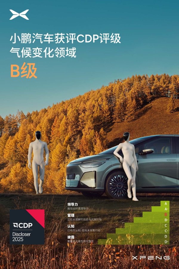 【智车派新闻】近日,全球环境信息研究中心(CDP)正式发布2025年度气候披露评分结果。小鹏汽车首次参与该国际权威环境信息披露评估,即获得B级评价,成为截至目前参与CDP气候评级的中国车企中得分最高的企业。这一成绩标志着其在可持续发展与环境治理透明度方面取得重要进展。