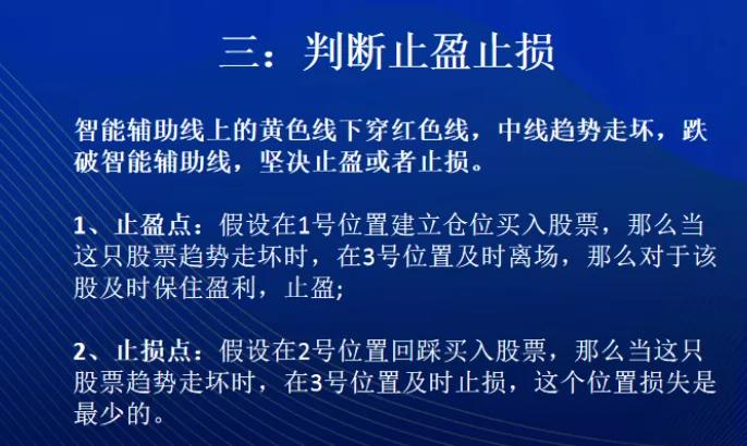 总结:智能辅助线是一个趋势性指标。常运用就是判断趋势方向、判断支撑位和压力位以及判断止盈止损的。做趋势走好的股票,方向确定,就算操作能力差,不小心追高了,后期依然能有上涨空间。操作不要追涨杀跌,趋势操作,右侧交易。