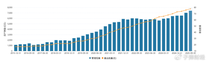 截至2025年9月末,Wind数据显示,兴证全球基金管理规模已突破7000亿元大关,达到7414.32亿元。
