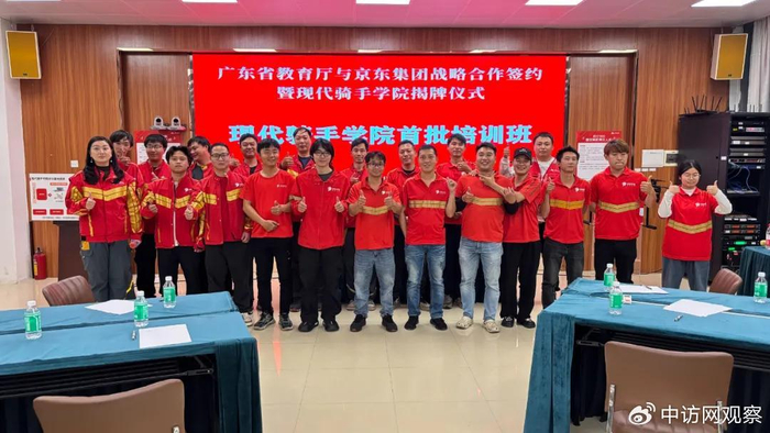 11日,广东省和京东在广州共同发起成立全国首家“现代骑手学院”,探索打造“高水平技能骑手转岗和职业提升”的政企校合作标杆。“骑手学院”将依托于广东院校的场地、设施、师资等资源,为京东全职骑手提供职业发展的能力提升保障。未来三年,“骑手学院”的教育培训有望覆盖京东(含德邦、跨越)在粤的所有10万+全职骑手和一线小哥。