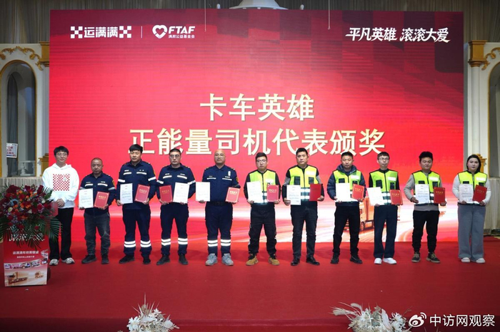 12月16日,山东菏泽的寒冬,被一场特殊的宴会所暖化。满帮公益主办的“平凡英雄,滚滚大爱——运满满年终英雄宴”在此启幕,200位货运司机齐聚一堂,见证11位“卡车英雄・正能量司机”获颁荣誉证书,同时“菏泽大猫车队”被正式授予“满帮公益车队”牌匾。