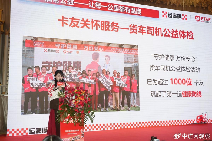 满帮公益负责人吴淑婷在致辞中表示,“让每一公里都有温度”是满帮公益的核心理念。这一“温度”有着双重内涵:一是为货运司机构筑坚实后盾,提供关怀与服务;二是搭建广阔舞台,传递爱心与正能量,让货运司机的英雄之光被更多人看见。