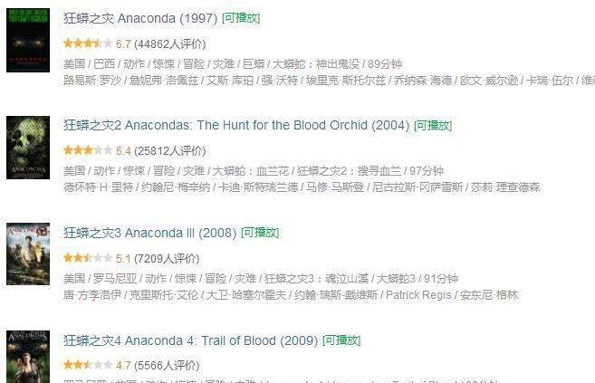 由于票房还算成功,《狂蟒之灾》又陆续拍了三部续集,可惜口碑每况愈下,不了了之。