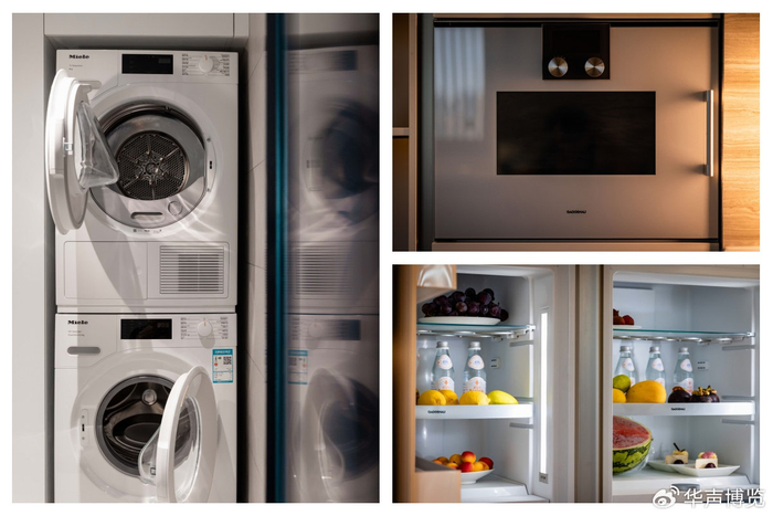 引入全球顶豪标配的德国嘉格纳冰箱与蒸汽烤箱。冰箱以细胞级保鲜(三文鱼透亮7天、松露留香60天)和独特设计,成为“隐形艺术品”与“社交名片”。蒸汽烤箱具备烘焙石、精准温控(±0.1℃),还原星厨风味。搭配德国美诺洗碗机及烘洗机套装:洗碗机静音(45dB)、高效洁净、99.9%除菌;洗衣机以专利蜂巢护衣(损伤率0.8%)、玫瑰清洗不损和智能烘干著称。这些品牌是功能标杆,更是塔尖圈层身份符号。