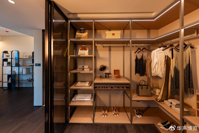 更值得关注的是,开发商自主品牌山涧半夏木作系统的打造。源于对国际顶级品牌(如Poliform,Molteni&C,Porro)顶级工艺与设计精髓的汲取,以及对中原塔尖客群的需求洞察,未来天奕以开发商的全链路掌控力,自建高定生产线。3#楼王衣帽间采用香槟金主体结构,融合木质、皮质等多元材质,质感媲美国际大牌。核心配置奥地利BLUM顶级五金件及顶级收纳品牌BASISTEM(巴斯蒂姆)的置物架与衣裤架,确保精致耐用与极致收纳体验。