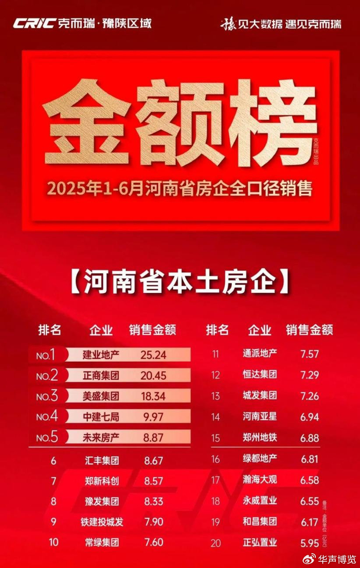 2025年7月,克而瑞发布的河南本土房企销售榜单引发行业震动:未来房产集团凭借郑州金水区单盘项目未来天奕,以1-6月销售额8.87亿的战绩,强势跻身河南省本土房企销售金额TOP5。这一数据背后,是本土房企战略转型的深刻隐喻——在头部房企以多盘联动、高周转模式主导市场的背景下,未来天奕以“单盘极致主义”破局,成为河南本土房企突围的标杆案例。
