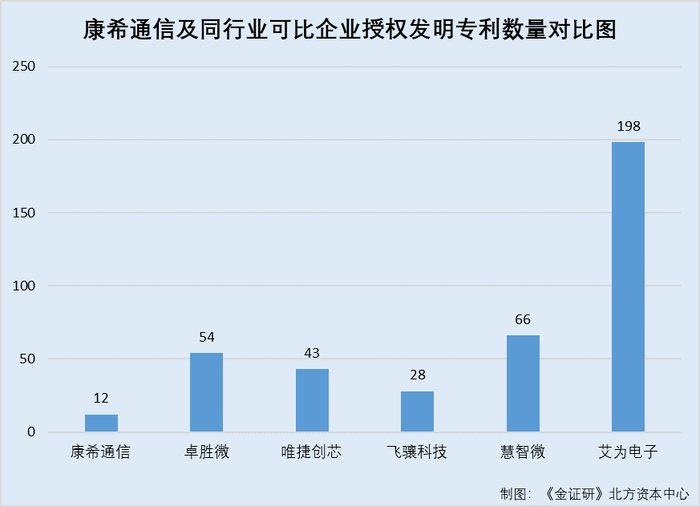由上述可知,康希通信的获得的专利数量、已授权的集成电路布图设计数量,在同行可比企业中“垫底”。