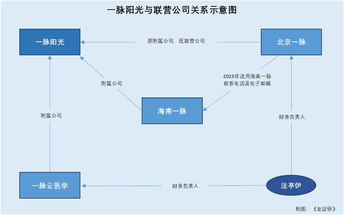 据市场监督管理局公开信息,一脉阳光附属公司一脉云医学科技(北京)有限公司(以下简称“一脉云医学”)成立于2024年1月22日,截至查询日2024年5月30日,一脉云医学的财务负责人亦名为法亭伊。