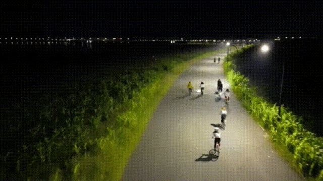 高湖绿道亮灯升级骑行爱好者:更安全了