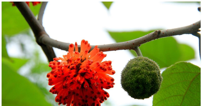 在4月份,构树上面结的果实,由青色变成红色的了,看起来有点像花,肉肉的,在70-80年代的时候,农村孩子常采摘来吃。现在吃的人很少了。