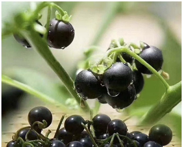 龙葵果,一种黑黑的野果,是一种叫龙葵菜的植物上面结的果实。龙葵菜也叫做白花菜,长大后开着白白的小花。