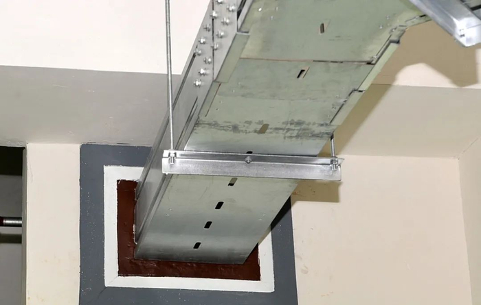 平直线段桥架吊架间距1.5m~2m,如果采用吊杆支架,吊杆直径不应小于8mm,且需在过梁处应设置固定支架。