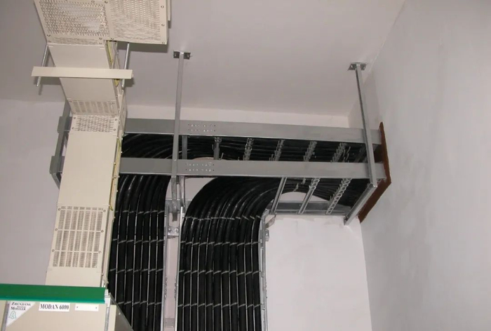 与土建配合,桥架穿越墙体、楼板等部位预先留孔。