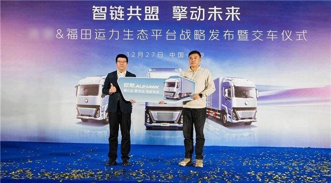 12 月 27 日,以 “智链共盟 擎动未来” 为主题的运力生态平台战略发布暨交车仪式在福田汽车长沙超级卡车工厂隆重举行。活动现场,百台欧航超级卡车矩阵整齐排列,将正式交付物流大客户,同时,双方携手构建智慧物流运力生态平台。这不仅是欧航产品实力与市场认可度的硬核印证,更是商用车企业与物流企业深度协同、共建产业生态的标杆实践,为物流行业高质量发展提供全新范本。