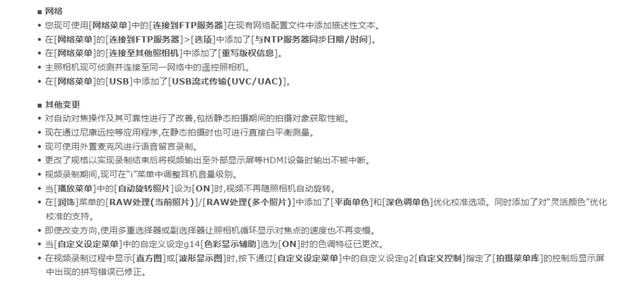 尼康Z9固件5.30版更新如下: