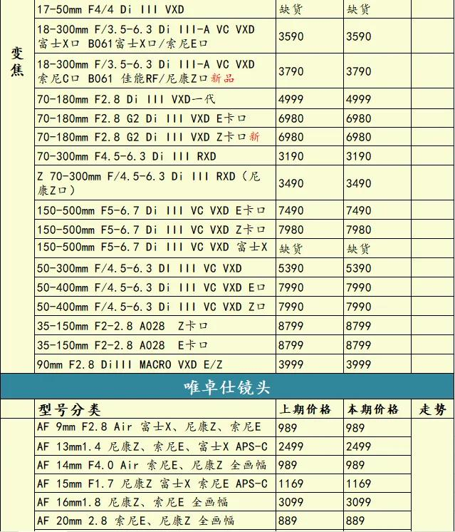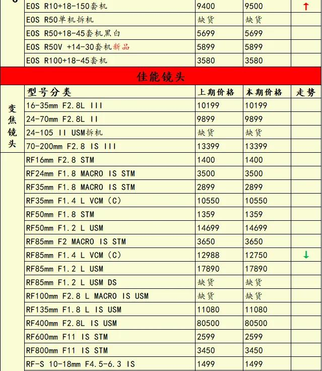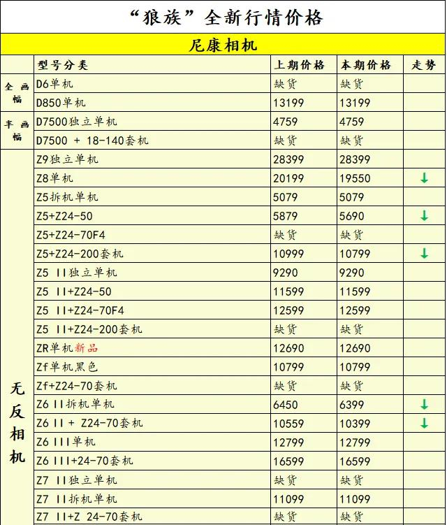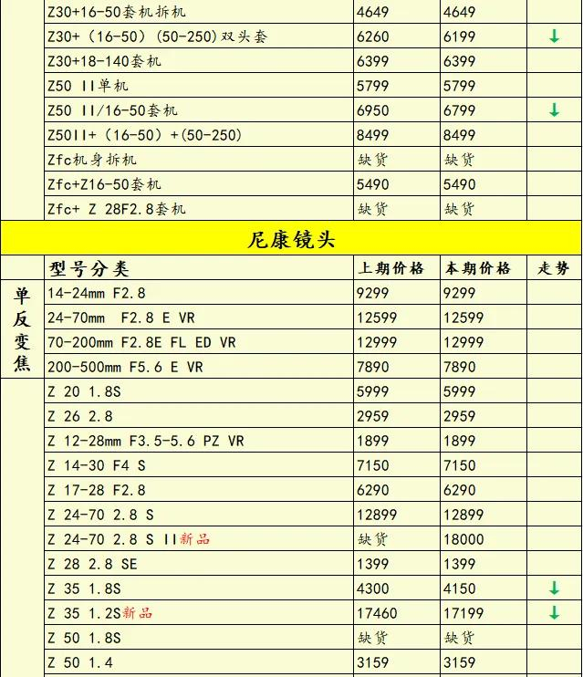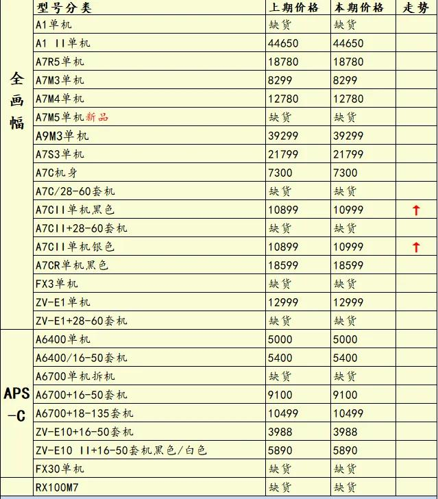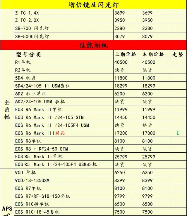 看看本期行情。尼康方面,Z8单机、Z5套机、Z6 II单机套机等降价!佳能方面,R6 Mark III降价,R10套机价格微涨;索尼方面,A7C II单机价格上涨;