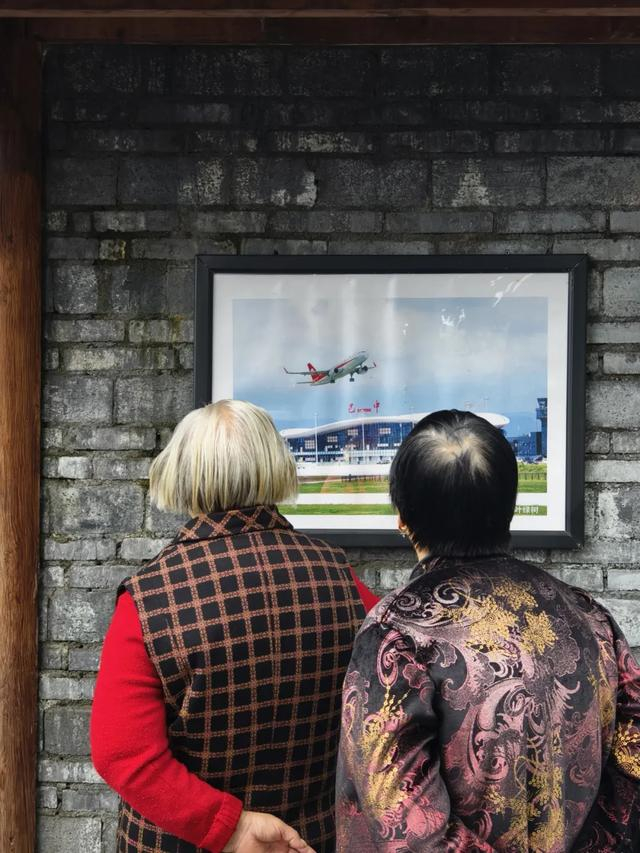 点评:照片以两位老人驻足观看一张摄影作品为拍摄契机点,内容充满故事感。老人的衣着具有中国百姓特色,灰砖墙为背景,非常生活化,与墙上画框中现代化机场、飞机照片形成对比,内容极具故事质感,仿佛在诉说着老人对远方的遐想,或对时代变迁的感慨,人文气息很浓。