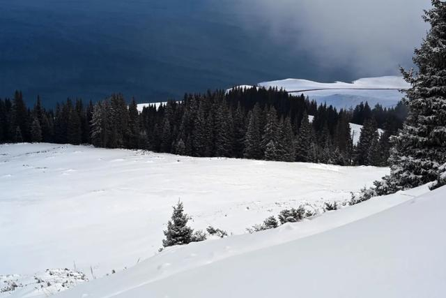 结果遇到这样的天气,感觉像世界末日。狂风卷着雪沫横扫湖面,天地昏沉,恍如特效大片。赛里木湖就是这样,天气预报仅供参考,不过像这样极端的天气还是很难遇到。特别是这种风吹雪的景象也是赛里木湖的一大景观。