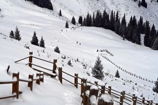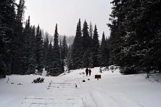 越往山上走风景越来越好,但也越来越艰难。从这里可以看到雪已经把木栈道已经覆盖了1米多厚。走的每一步都很艰难了,此时我已经力气快耗尽了。因为早上出发早,没有吃早饭,现在每走一步都会耗尽全部精力。