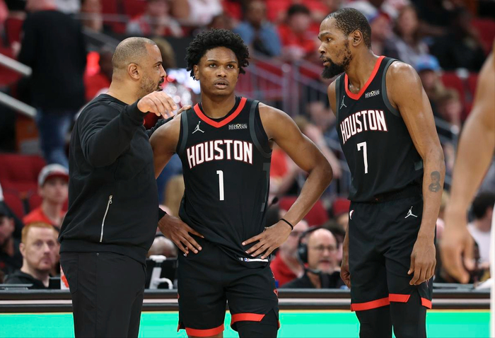 第二个变化,中锋位置确定是工具人位置。有了杜兰特之后,火箭队中锋位置,其实就是一个工具人角色了。大家可以看看本赛季火箭队的比赛,申京打得像工具人的时候,球队反而更加受益。这场比赛亚当斯顶替首发,亚当斯扮演的就是工具人角色,丝毫不影响球队的打法和运作,这些都看在眼里。